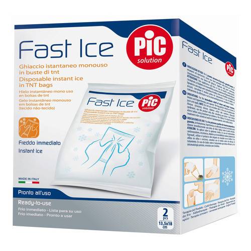 Fast Ice Ghiaccio istantaneo monouso in buste di tnt Per il Pronto Soccorso di piccoli e grandi traumi, basta una lieve pressione sulla busta per ottenere rapidamente una borsa del ghiaccio. Mantiene la temperatura di 0° per 30 minuti. Formato Confezione contenente 2 buste in tnt di ghiaccio istantaneo monouso. Cod.0001226010000